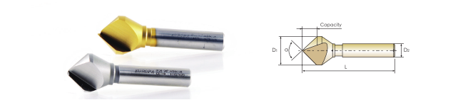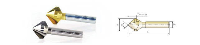 適用:自定心(3 刃),為90° 螺帽釘做埋頭孔而設計,手用,縱向倒角和作等值線,加工時不會震動